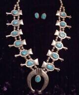 Squash blossom necklace and earrings. This set has been authenticated as 1970s