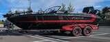 50 hours on boat and 3 motors-includes a 15 hp Mercury kicker and 9.9 electric trolling motor with remote. Large Lowrance screens at control and front. Zip Wake and R.I.D.E. systems. Snap out carpet.